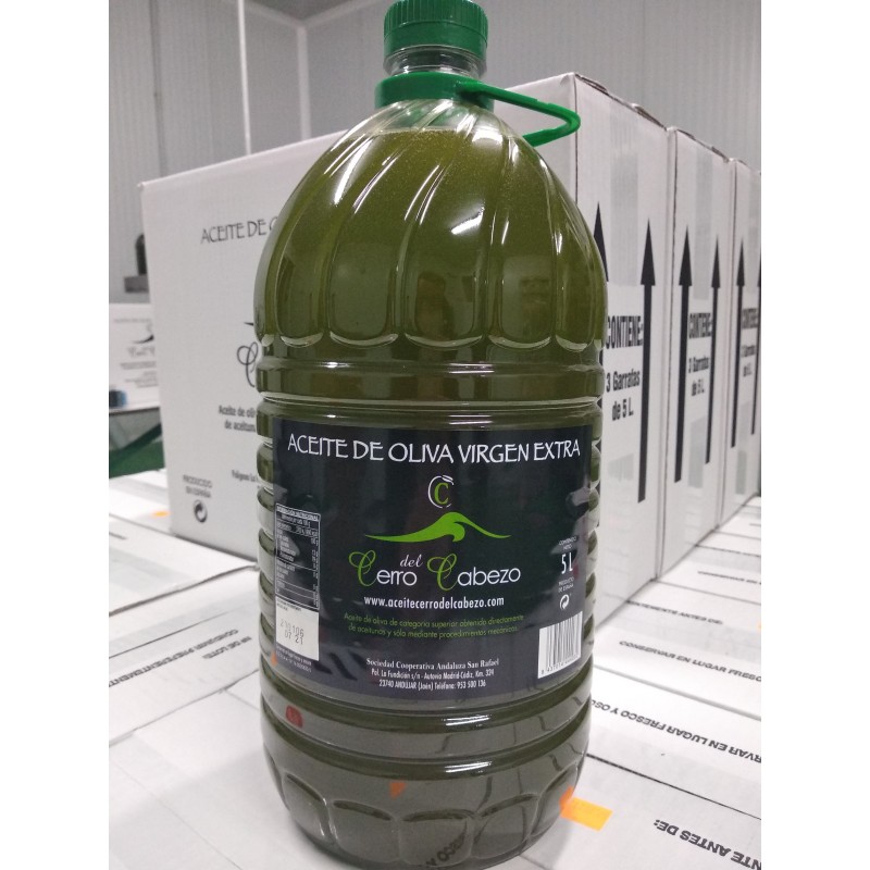 Caja de 15 litros de Aceite Virgen Extra "en rama" (SIN FILTRAR), 3 unidades de 5 l, envase PET. Variedad Picual.
